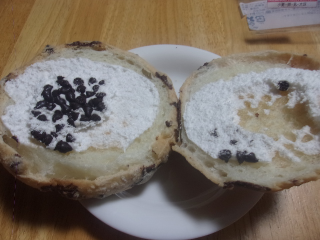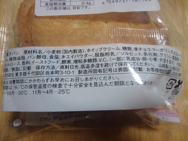 パンを開いてみると、内部にはホイップクリームとチョコチップがたっぷり。