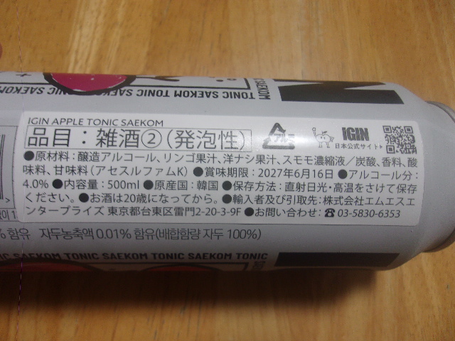 今回は、BTSのジンをアンバサダーに迎えているという話題性もある IGIN APPLE TONIC SAEKOM(アイギンアップルトニック セコム) を実際に飲んでみた感想をお伝えしたいと思います。