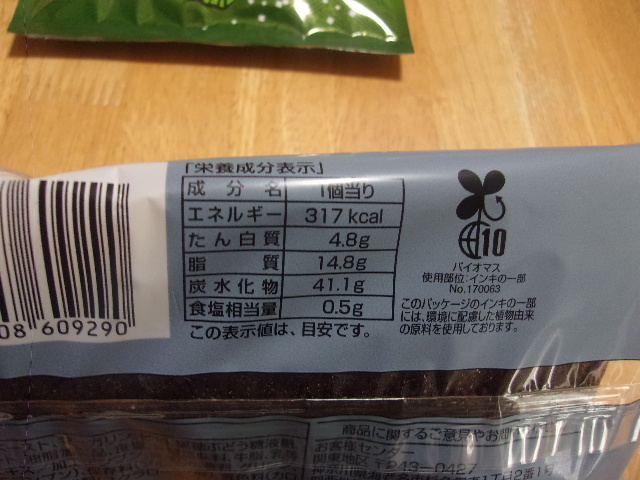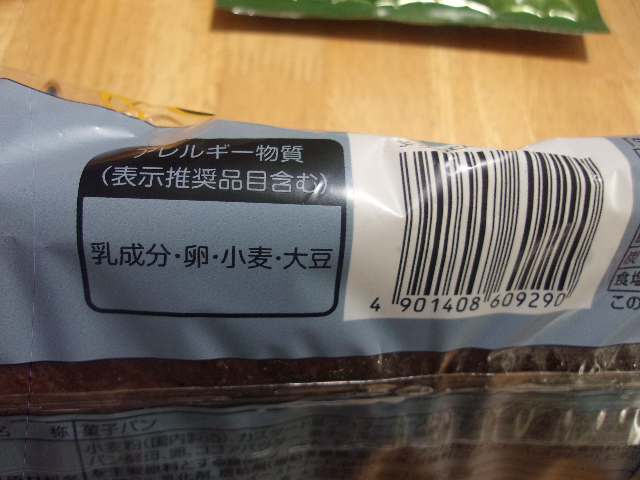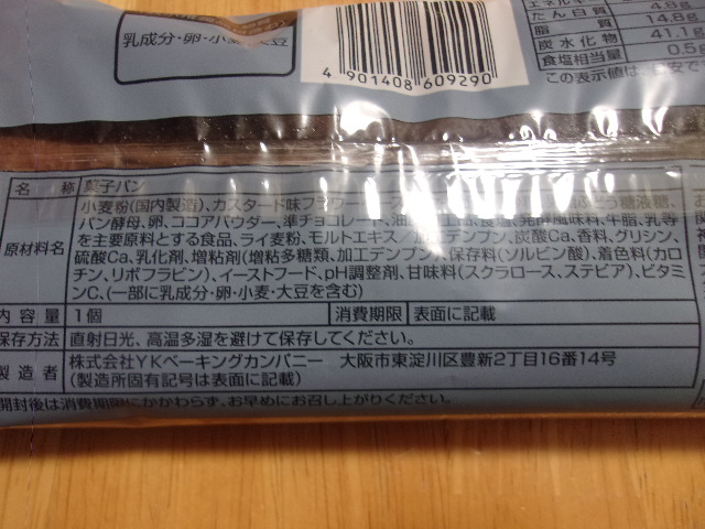 小麦粉(国内製造)、カスタード味フラワーペースト、マーガリン、砂糖、果糖ぶどう糖液糖、パン酵母、卵、ココアパウダー、準チョコレート、油脂加工品、食塩、発酵風味料、牛脂、乳等を主要原料とする食品、ライ麦粉、モルトエキス/加工デンプン、炭酸Ca、香料、グリシン、硫酸Ca、乳化剤、増粘剤(増粘多糖類、加工デンプン)、保存料(ソルビン酸)、着色料(カロチン、リボフラビン)、イーストフード、pH調整剤、甘味料(スクラロース、ステビア)、ビタミンC、(一部に乳成分・卵・小麦・大豆を含む)