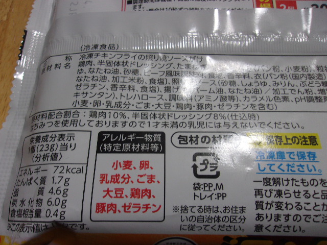 甘辛い照り焼きダレとマヨソースの組み合わせが秀逸な冷凍チキンフライでした。
