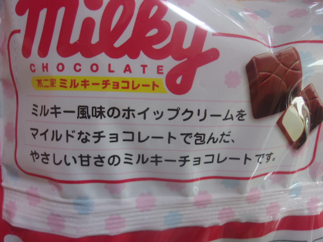 中には北海道産生クリームを使用したミルキー風味のホイップクリームが入っており、外側を包むのは舌ざわりの良いマイルドなミルクチョコレート。ミルキーならではの“やさしい甘さ”と“なめらかさ”が感じられる、根強いファンの多い商品です。