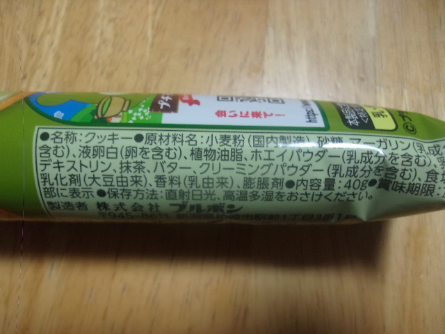 小麦粉(国内製造)、砂糖、マーガリン(乳成分を含む)、液卵白(卵を含む)、植物油脂、ホエイパウダー(乳成分を含む)、乳糖、デキストリン、抹茶、バター、クリーミングパウダー(乳成分を含む)、食塩/乳化剤(大豆由来)、香料(乳由来)、膨脹剤